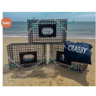 Green crabs are walkers, not swimmers like blue crabs. This top entry design is similar in concept to traps used in the Florida stone crab fishery. Our green crab trap is constructed from 1″square mesh wire and measures 9″ x11″x18″. Package includes 3 green crab traps, optional rigging (rope and buoy) and a t-shirt.