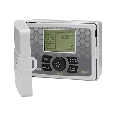 Adding to our legacy of top-of-line controllers, comes the most intuitive, feature-rich timer to date. The Hydro-Rain HRC 400 Smart Irrigation Controller, powered by B-hyve, combines the easiest-to-program controller on the market with the remote capabilities of Bluetooth and wifi.