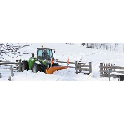 Mechanical or optional hydraulic swivel device 30° via two stable hydraulic cylinders. The roller level compensation and the infinitely variable adjustment of the running wheels/skids guarantee precise clearing results.
