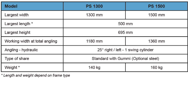Snow plough models are shown here in a range of sizes, which are suitable for your tractor or implement carrier up to 30 HP.