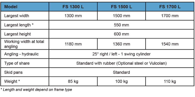 Snow plough models are shown here in a range of sizes, which are suitable for your tractor or implement carrier up to 30 HP.