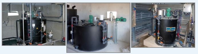 Sodimate tanks are made out of black HDPE, and their design and layout is fully customizable. The tanks come fitted with a mixer, valves, detectors, as well as necessary fittings for pumping, draining, over-flow, and liquid recirculation. Tanks are dust-free and their volumes typically range from 100gal to 1,000gal. Larger tanks up to 700ft³, made of HDPE, epoxy coated steel, or stainless steel, can also be fabricated.