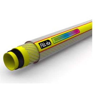 A soft and manageable garden hose. STRUCTURE: hose with a 6-layer structure, with a yellow interior, an anti-algae black layer, a yellow intermediate layer, NTS mesh reinforcement, transparent outer covering, SKY TECH film with special anti-UV formula that prevents ageing and gives the hose a special satin finish. The look of the hose is made even more captivating by a special new design.