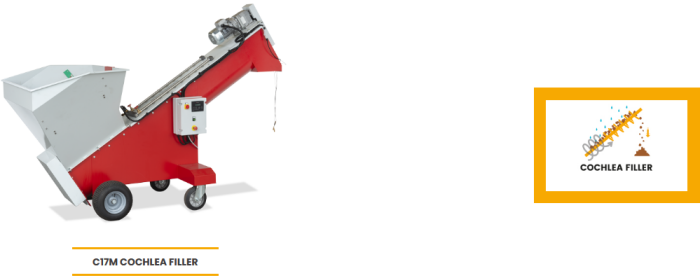 Filler with “screw” filling system, soil block maker, automatic soil block positioner inside trays.