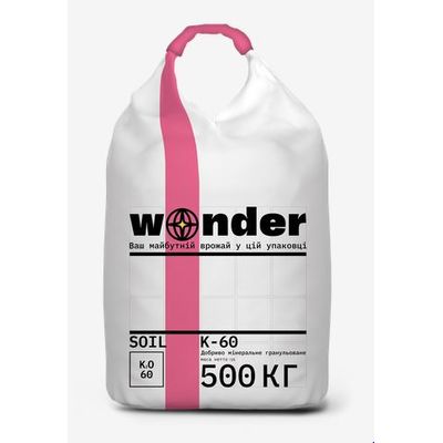 Composition: 60% Water-soluble potassium (K2O). Form Granules of 3-5 mm not less than 90%. Packaging 500 kg.
