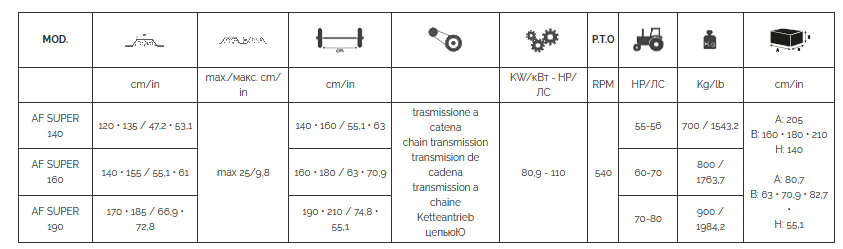 The bed-former AF SUPER allows to work deeply the soil without changing its own natural structure. The teeth of the back rotor shatter the most superficial clods and move the biggest to the front rotor, which turns in the opposite direction. With AF SUPER machine there is a very good preparation of the soil for the sowing or for the transplanting, a good water drainage with a consequent product uniformity. It is possible to work at the same time with 2 or 3 machines model AF SUPER which are logged in a collapsible frame model AIRONE, complete with wheels.