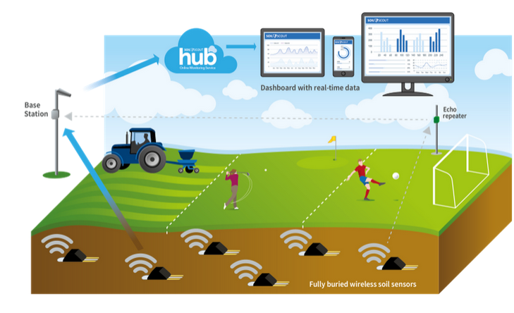 Soil Scout is the first-ever soil sensor system that allows you to place any number of fully buried wireless sensors all across an area, giving you a complete real-time underground weather map to your fingertips. It is the most advanced and cost-efficient soil monitoring solution for professionals in agriculture, golf and sports turf maintenance.