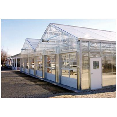This Agra Tech, Inc. rigid-peak greenhouse is known as the "Dry House" with a built-in condensate removal system. The Solar Light design contributes to excellent condensate removal, increased air circulation and superior strength. SPS Thermaglas covered galvanized steel frame and extruded aluminum trim have proven to make this greenhouse a long-term investment. Gutter-connect capabilities and a built-in automatic shade / energy shield system option increase the versatility of the Solar Light. Clear-span standard widths available include 18’, 24’, 30’, 36’, 42’ and 50’. Standard eave heights are 8’, 10’ and 12’. The Solar Light can be a beautiful retail showcase, state-of-the-art research facility, economical educational center, functional headhouse or efficient gutter-connected range for wholesale commercial production.