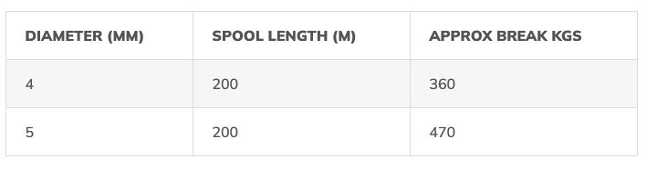Low Stretch polyester core and a high tenacity 16 plait polyester cover. Suitable for consistent settings on sheets and control lines. An Ideal rope for traveller, Cunningham, outhaul, halyards, sheets and sailboard downhauls. Can also be used for Djembes, Bougarabou and Dunun Drum making.