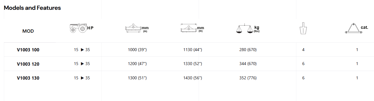 The V1003 is the lightest of the SICMA spading machine range to be applied to tractors from 15 HP up to 35 HP. Perfect to work the soil in vineyards, orchards, horticulture and nurseries, it is equipped with a 4-speed lever gearbox with gears and external slides to adjust the working depth.