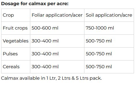 Calmax is a synergistic complex blend of Calcium and Cluconolactate which is a easy to use formulation that provides excellent nutritiona support to get sturdy and perfectly healthy plants. Calmax mixes easily with water to form a uniform sprayable mixture.