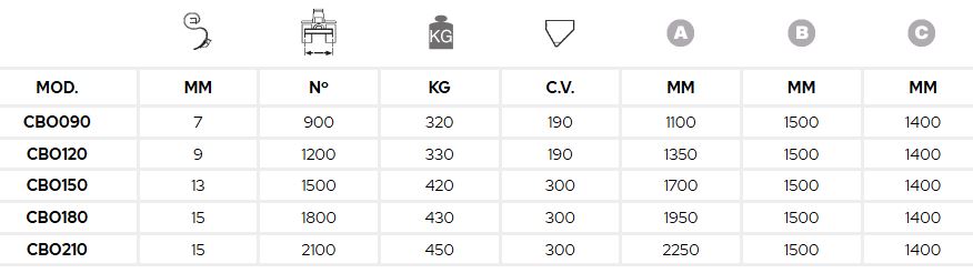 - Coupling CAT I (mod. CBO090 – CBO120) or CAT II (mod. CBO150 – CBO180).