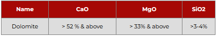 Calcined Dolomite or Flux Dolomite is the name given to the quick lime formed from calcining a natural dolomitic Lime Stone. It contains high levels of Magnesium Oxide along with calcium. Dolomite Lime is available in lumps and powder form of various sizes, grades, and purity.