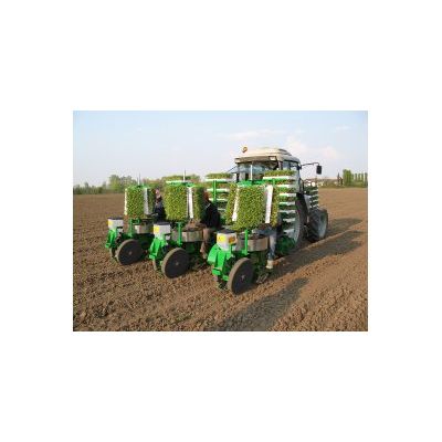 The transplanter FLORIDA, suitable for the planting of speedlings plants, has the independent planting units with parallelogram, which guarantees an exact working depth even on irregular soils, plants PVC carousel distribution with 6 or 10 cups. Equalizer with front rubber Farmflex wheel, big plants falling pipe of stainless steel, guillotine for plants support. The transplanters are available in the version STM with single toolbar and in the version STDM with double toolbar. The FLORIDA transplanter has a high production: 4.000 plants/hour per unit for 6 cups model and 6.000 plants/hour per unit for 10 cups model.