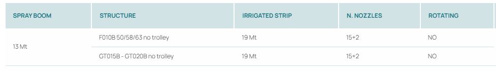 Spray boom systems from 13 metres. Without trolley for agricultural irrigation.