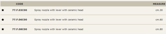 Metal PI - Model 77.F. -Spray Nozzle with Lever Ceramic Head