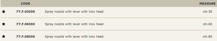 Metal PI - Model 77.F. -Spray Nozzle with Lever with Inox Head