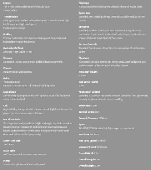 The 5500 is an obvious sized machine to take a larger than 24m booms and the factory built steel booms now feature hydraulic anti-yaw and can spray at 12, 24 and the widest boom width. They can also be fitted with the latest Hypro ‘DuoReact’ nozzle bodies for the fitment of fertiliser dribble bars.