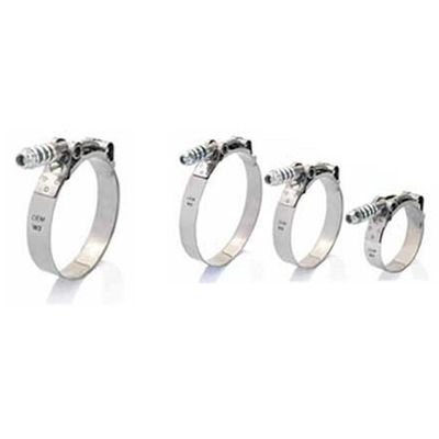 IDEAL Spring-Loaded T-Bolt clamps provides constant band tension for medium and high pressure joints. Changes resulting from the pressure in the hose diameter is absorbed and prevents hose extrusions. Through spring reduces the rate of vibration. HYTB model is designed for heavy-duty applications.