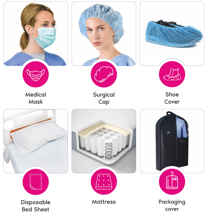 Our SS & SSS Hydrophobic Fabric have admirable quality of repelling water with very low absorbency. It gives high tensile strength with great Uniformity. Because of its advance structure & technology it offers fabric with high loftiness. The above uniqueness allows its use for all the application from various sectors such as, Hygiene, Medical, Roofing, Agriculture, Packaging, Furnishing and many more..