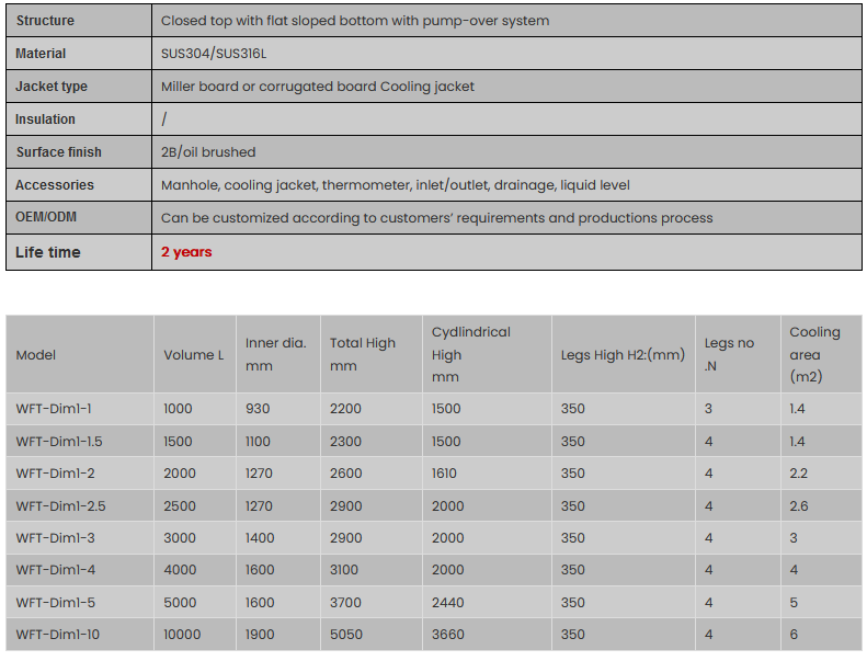 Pretank - Model WFT-Dim2 -Stainless Steel Pump Over Jacketed Wine Fermenter Tank