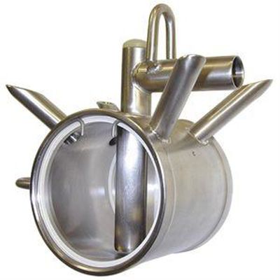 3/4" Outlet Top Unloading Claw allows the milk to begin exiting almost immediately which helps maintain vacuum stability. Constructed of 3/8" stainless steel top unloading claw features quality workmanship and superior finish. Extra large capacity and large outlet make for easier milk flow while the tall styling eliminates swirling and breaks up flow for smoother evacuation of milk. Barrel depth is 3-3/4" and window OD measures 3-3/16". Claw features highly polished stainless steel construction with standard beveled inlets and invisible welds. Capacity is 328 cc (20 cu. in.). Use with 140114 stainless steel twin air fork.