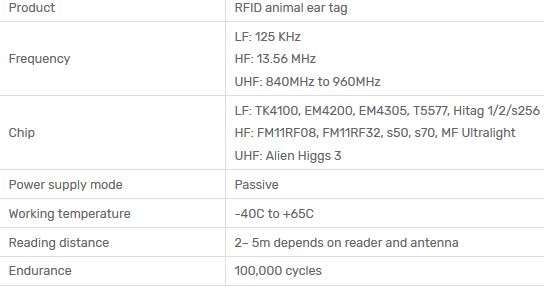 RFID animal tags for animal tracking and tracing syste. RFID animal ear tag is a kind of radio frequency identification tag which is used to identify the animal properties with storage, literacy, communication and exchange of animal information. It`s also a RFID tags in animals. RFID animal ear tags are nontoxic, non-irritating, non odorous, waterproof, wear resistant, crack free, soft without deformation, and long data retention. The tags can be attached on the livestock’s ears conveniently.