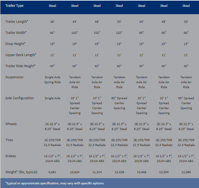 Jet has been manufacturing steel Drop Deck, Step Deck and Double Drop Deck trailers for over 25 years. Engineered for strength and performance, our drop deck trailers are comprised of two steel high strength fabricated beams. Every beam is designed as a continuous, one-piece assembly, and precision automation welded, this includes the beavertail of the trailer. Check out our combination aluminum drop deck trailer page for more information on our combo trailers.