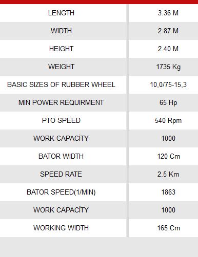SUPERIOR WORKING WIDTH:190 cm collectıng width increased the gathering performance at the same time, the fodder which is left in the fields are minimized thanks to the side rake.