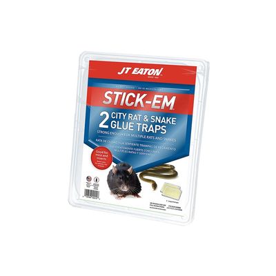 Stick-Em Glue Traps for City Rats & Snakes will trap and hold snakes of all sizes. Sold in 2 trap packs, each trap is completely covered with the ultra-sticky glue that can securely hold snakes, rats, mice, spiders, scorpions and other nuisance insects.