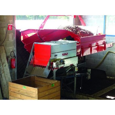 The range of SB2 flap separators allows the separation of impurities (branches, crushed pruning residues, large stones, leaves, bugs,…) from the noble product such as nuts, hazelnuts, chestnuts, almonds, cider apples…
