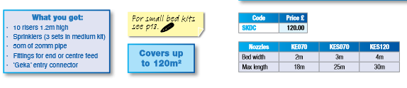 sprinkler and straps to fit to the customers own stake (25mm square is ideal). The medium kit will water an area up to 100m 2 (25m x 4m). Requires 3mm punch