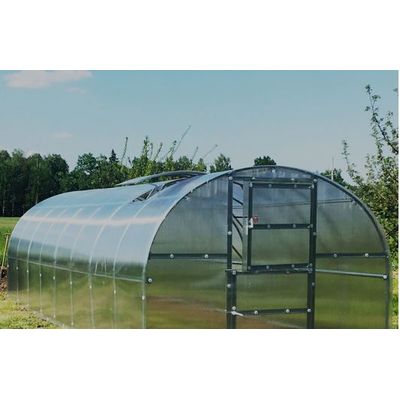 The greenhouse is 3 meters wide, 2,4,6,8 or 10 meters long, and 2.1 meters tall. 12 square meters of space. Galvanized steel screws and nuts hold the frame together. 4 mm thick, UV-protected, European-made PC of the highest quality. Because it doesn`t need a separate base, the greenhouse is simple to erect and our team can have your greenhouse installed in record time.