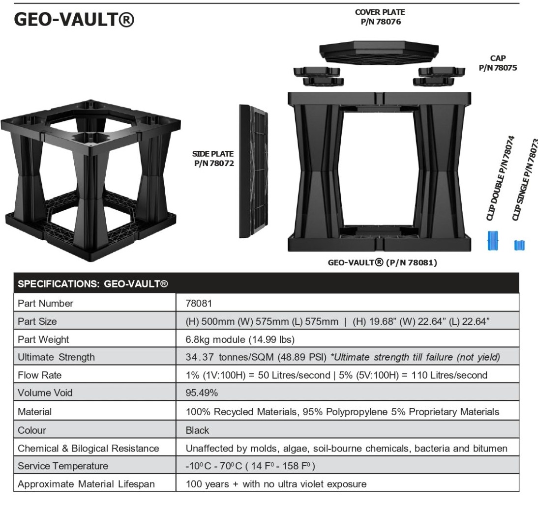 Crafted from recycled plastics, the Geo-Vault® contributes to a circular economy by being fully recyclable at the end of its life cycle—offering both environmental responsibility and engineering excellence.