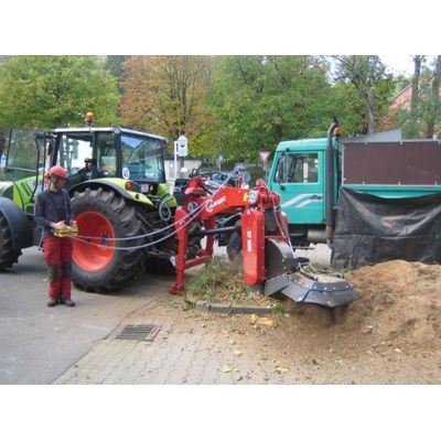 Applications: Forestry, tree nurseries, landscaping, plantations, site preparation. Functions: Economic and efficient grinding of all types of stumps, Grinding stump rows, Stump grinding in plantations, orchards, parks and gardens. Technical Description: The SF900 is a PTO-driven attachment with Cat II and III three-point linkage. It can be mounted on a range of machines with the appropriate power rating and linkage configurations. The SF900 excels by its robust, solid and compact design and its large operating range. The SF900 stump grinder is operated by cable remote control. The grinding wheel is driven by a drive shaft, gearbox and power belts on both sides of the unit and is equipped with eight wearing plates and eight chisel tools, all of which are carbide-tipped. This combination allows lateral grinding as well as a radial cut of the stump. All tools are easy to replace and long lasting compared to other grinder tools.