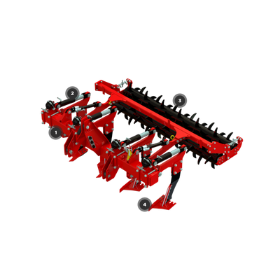 The HEKTOR is a machine designed for deep tillage of the topsoil and subsoil to a depth of 45 cm. The subsoiler is suitable as an alternative to ploughing or any other cultivation technology. Firstly, the subsoiler gradually lifts the soil, contributing to the cracking of the processed layer, and then the layer of soil is subsequently forced down by the rollers. The soil is aerated through this process, but at the same time its original structure is retained. Infertile layers of the soil and stones are not lifted to the surface of the field.