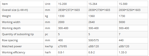 - The subsoiler shank with unique angle, together with unique combined subsoiler tip structure of main tip and double winged tip, makes this machine of low power consumption, small working resistance and high working efficiency.