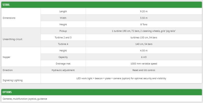 Franquet endeavored to design a simple, robust machine that consumes little power. This is why the cleaning circuit is exclusively mechanical, and driven directly by the tractor universal joint.