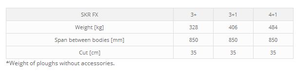 One-sided carried ploughs SUKOV type SKR FX are suitable for all types of soil after harvesting of grain and industrial plants. Adjusting elements of the first plough engagement and tillage depth are mutually independent, or set as fixed. Ploughshares are secured by screws that break if the share hits an obstacle. Each type can be equipped with coulters, disc cutters, and extension wings for the ends of moldboards. All types are equipped with graded mechanical vario plough body engagement system.