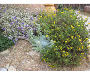Many local native plant enthusiasts however, are now successfully including in their gardens a few plants here and there, whose origin is just outside the boundaries of our region. The plants are from the heart of the Sonoran Desert. They can be incorporated into the California Garden on patios, in pots, in planter beds, plazas, and around pools, courtyards, and fountains. They will adorn these areas with many flowers in the hot months of Summer.