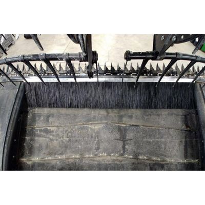 The AWS Airbar Sump Saver is specifically engineered for use with MacDon and John Deere flex draper heads. It features a robust brush that attaches directly to the front of the stone sump, located just behind the knife. This construction ensures a seamless crop flow transition onto the in-feed belt while enabling stones and other heavy debris to efficiently drop through the bristles into the sump. Designed for durability and efficiency, the Sump Saver prevents the crop from falling into the sump, maintaining a clean flow. It supports head models such as the John Deere 600FD, 700FD and MacDon FD70, FD75, FD1, and accommodates head lengths between 30 to 45 feet. Additionally, it can be easily bolted in place for quick installation and reliable performance.