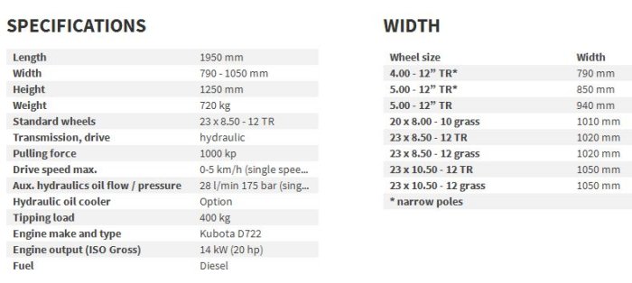 - Engine power 20-25 hp