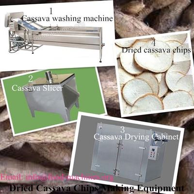 Supply Dried Cassava Chips Making Equipment: 1. Cassava Washing Machine 2. Cassava Slicing Machine 3. Cassava Slices Drying Machine Any need, pls contact info@food-machines.org; Website: www.fooddryingoven.com and www.food-machines.org