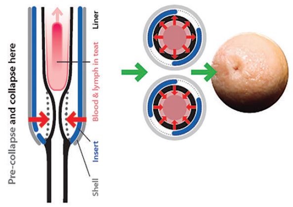 Concept of pulsation revolutionizing animal health results, improved udder health, reduced cell count and mastitis, and overall improved milking productivity. SurePulse™ includes plastic inserts placed between the shell and liners to control the movement of liner walls. Inserts help improve pulsation (curves). Limit liner distention/ erratic open and close. Softer liner movement, reduced ballooning. Gives control over collapse position on teat end.
