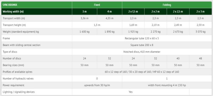Extensions with the hydraulically controlled folding SYNCHROMIX system as above 3m/4m.