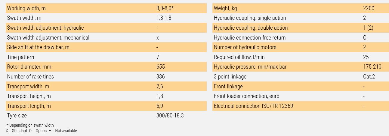 A flexible working width of 3–8 metres that can be adjusted from the cab while driving makes the V-Twin 750 ideal for scattering and irregular sections as well. The size of the forage harvester does not matter, as the rotors are designed to create a clean, regular and fluffy swath as wide as necessary that is easy to pick up. The multi-tined rotors also reduce the risk of clogging.