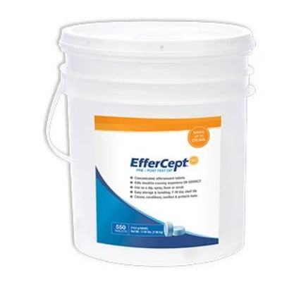 550 - Tablets / Jar Makes 275 Gallons of Solution. EfferCept SG is a teat dip for powerful killing, cleaning combined in one effervescent tablet. Enriched with SoftGuard “SG” conditioner, EfferCept SG penetrates to help protect and soften teats, skin, and udders. EfferCept SG quickly kills 99.999% of E. coli and Staph. aureus plus a broad spectrum of other mastitis causing organisms. The effervescent tablets dissolve in hard or soft potable water on farm. Dissolve 2 tablets per gallon of water.