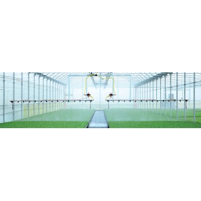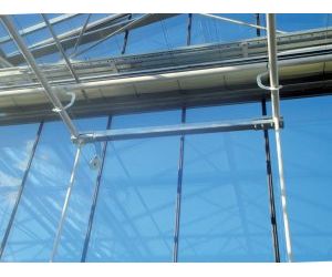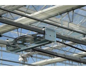Special applications of rails and trolleys mounted on the existing heating pipes of the greenhouse, instead of the rails supplied with the Mosa system. The tailor made system will also fit inside the lighting systems of the greenhouses and the water supply hoses can be of the size of 1” or 1” 1/4 inch.