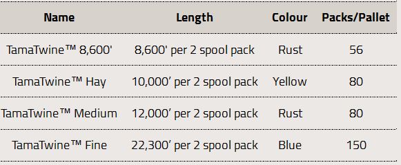A full range of conventional twines for small square hay and straw baling is matched by TamaTwine™ for round baling, which includes the higher specification TamaTwine+, an improved twine that delivers more cost-effective benefits, through improved production techniques and raw material development.