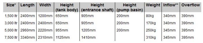- Tank delivered in one piece with pre fitted filter, overflow and calmed inlet